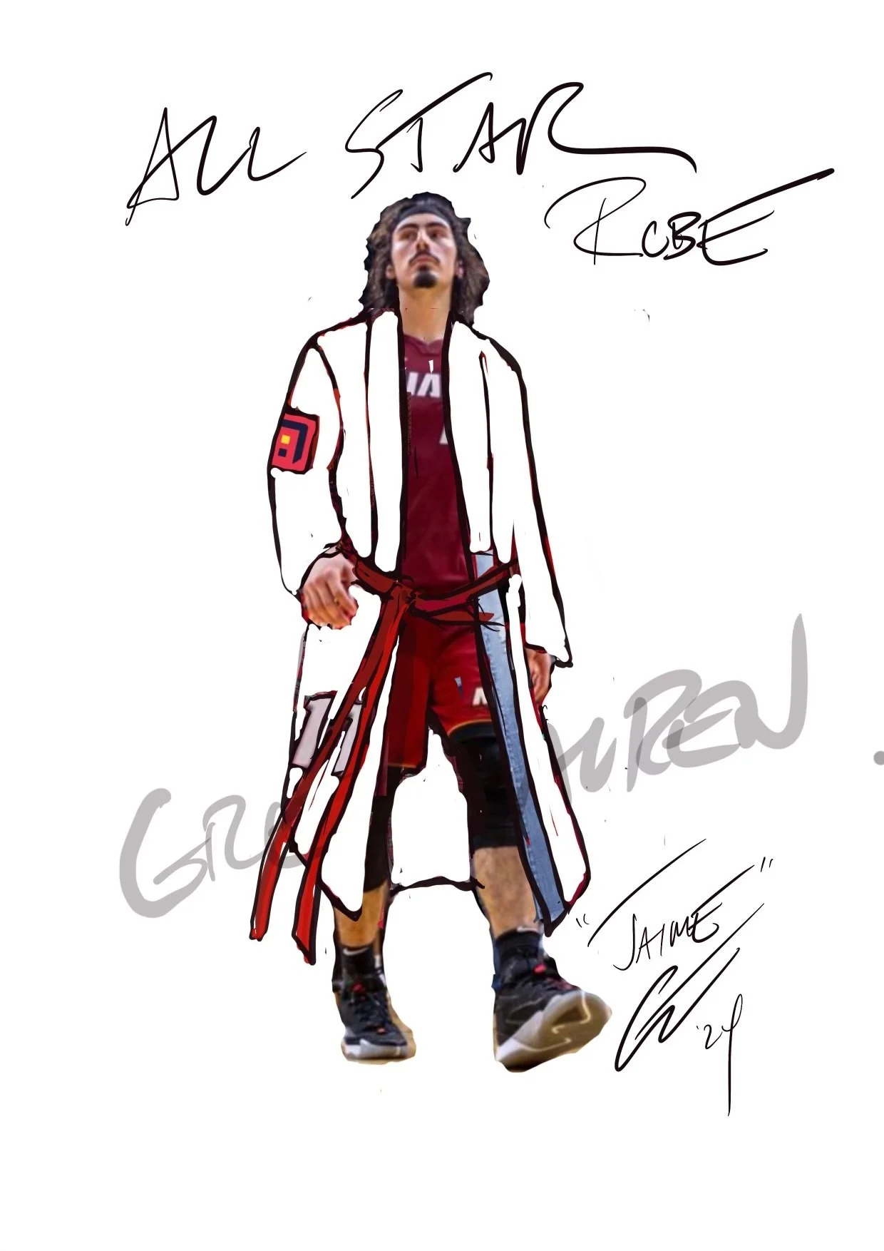 When we found out that Jaime Jaquez Jr. was going to be a part of the All-Star Game Dunk Contest, We collaborated with designer Greg Lauren to create a custom hotel robe.